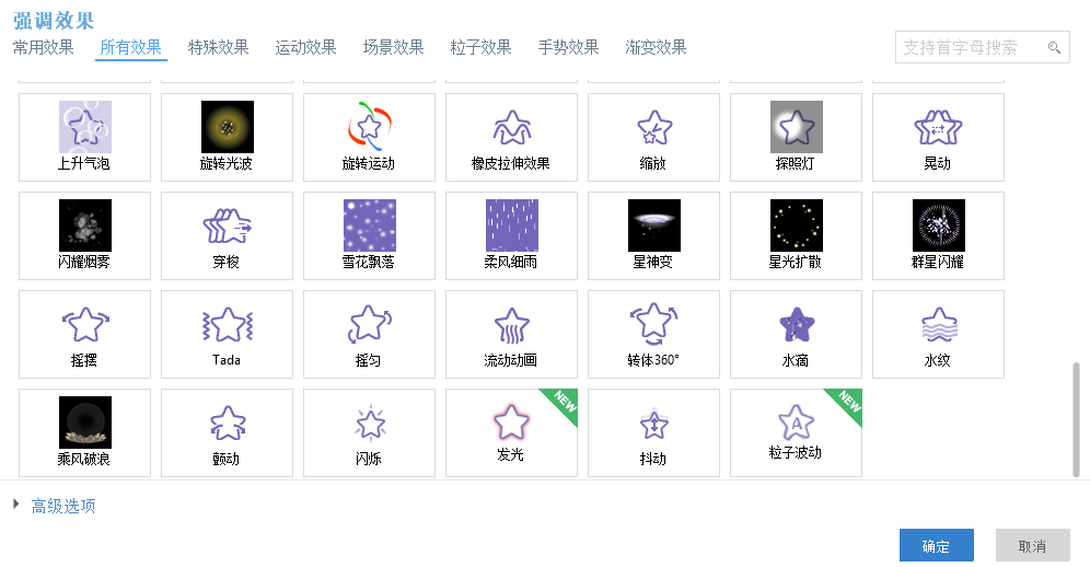 (3)可为加入的元素(如文字、图片等)设置各种炫酷的动画效果
